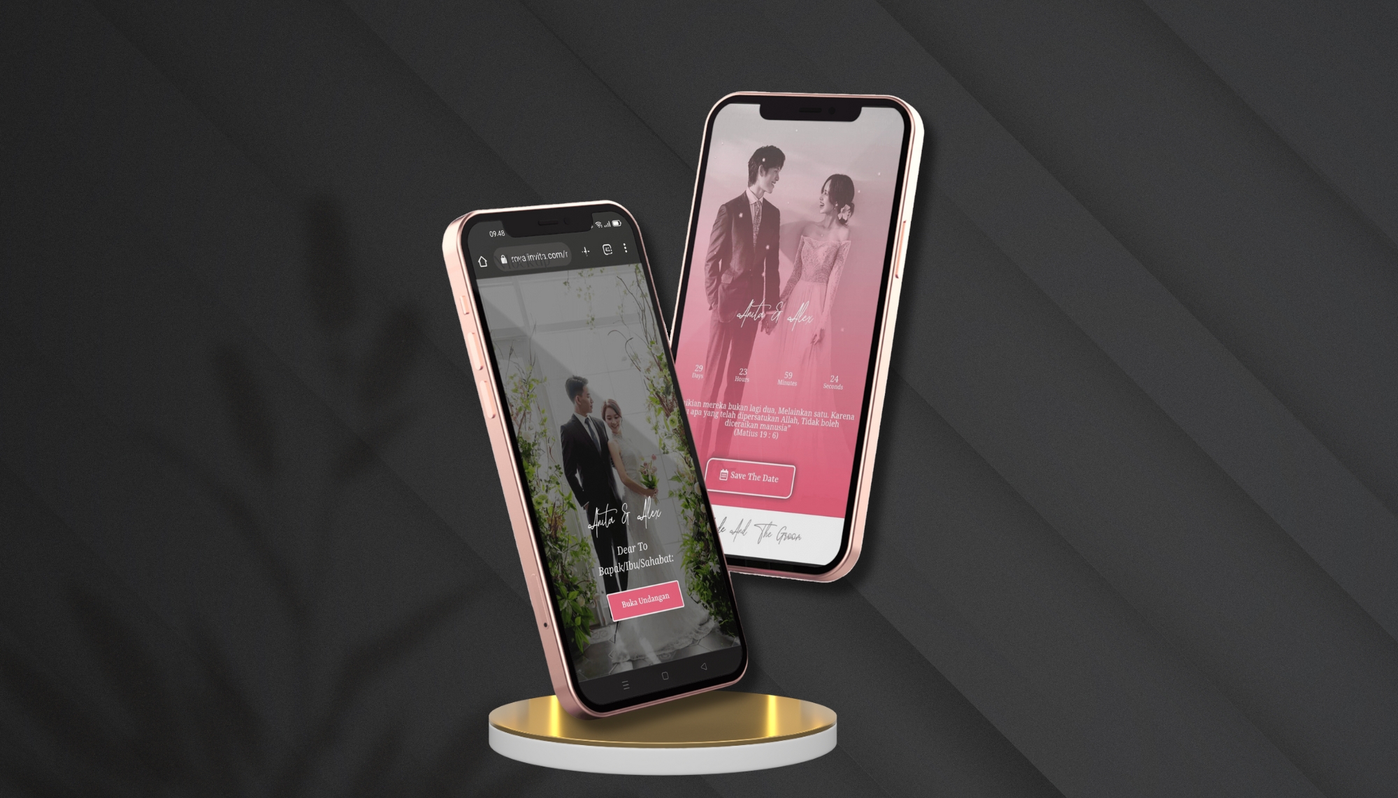 Custom domain adalah layanan untuk anda yang ingin memiliki halaman website undanganatas nama anda sendiri seperti : andadanpasangan.com | janan.com dll. Dan anda cukup bayar biaya custom domain tersebut dan kita akan buatkan website undangan spesial untuk anda.